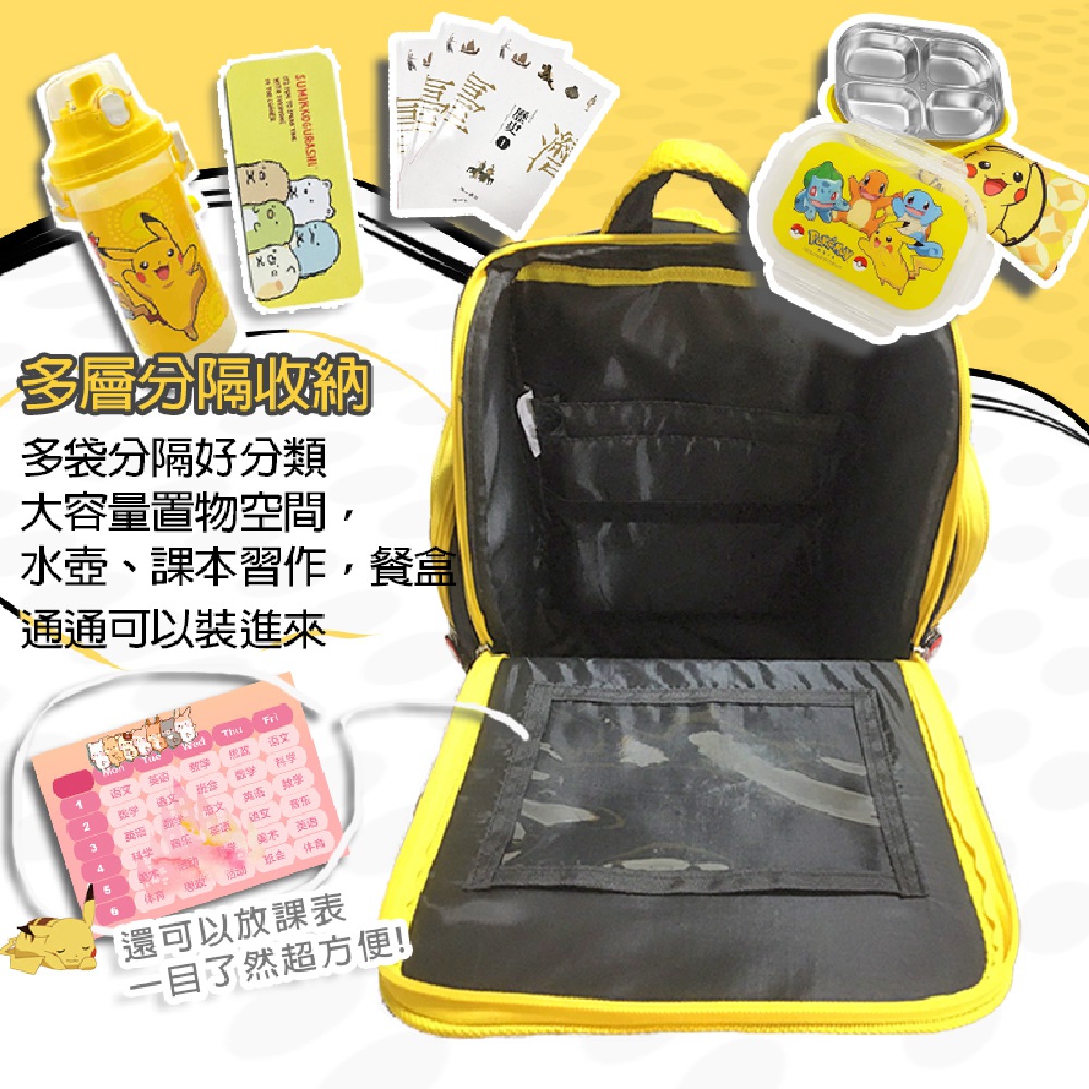 - 前方、側袋多層多口袋,可分類分區收納放學用品及隨身小用品雜物